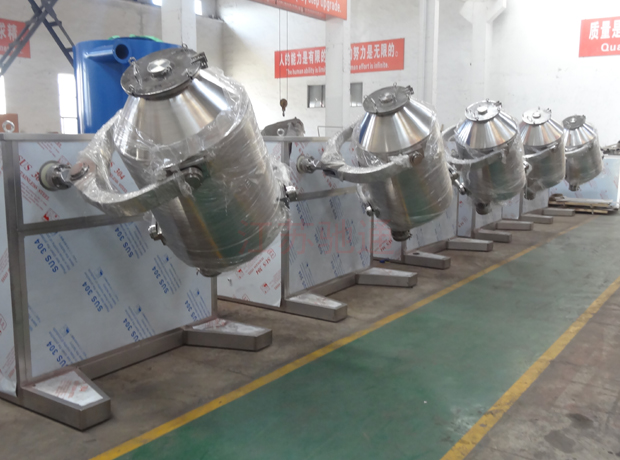 ? 混料器具有三維運動,從而使物料在流動,剪切,平移,擴散的作用下,使其由集聚到分散狀態并完成互相摻雜的過程,保證了物料混合均勻,均勻度可達999%以上。普通混合機,物科在容器內只作分合的簡單運動,效率氏,混合質量差;