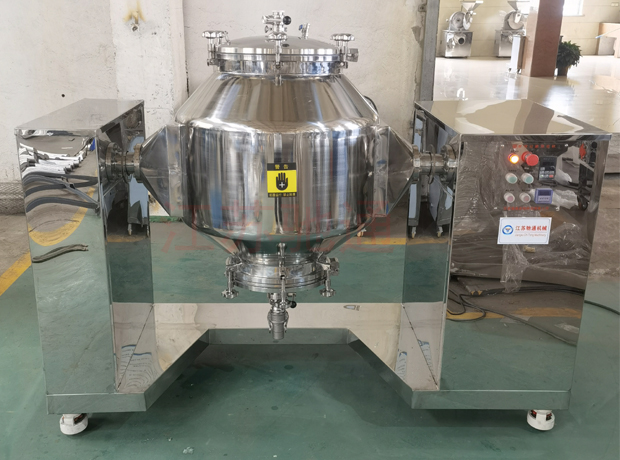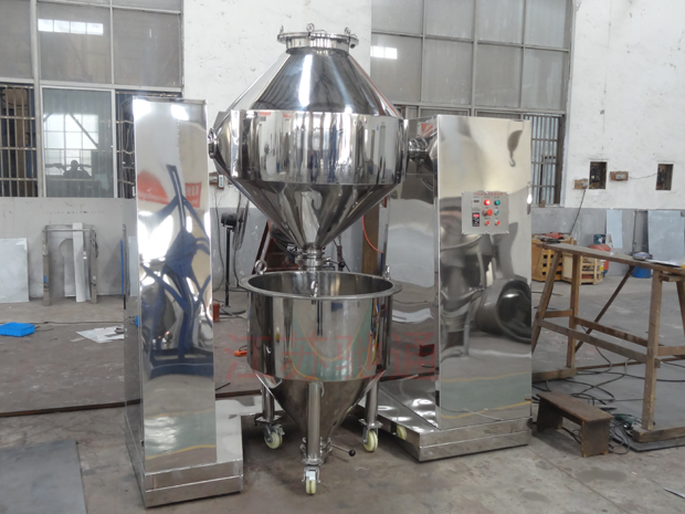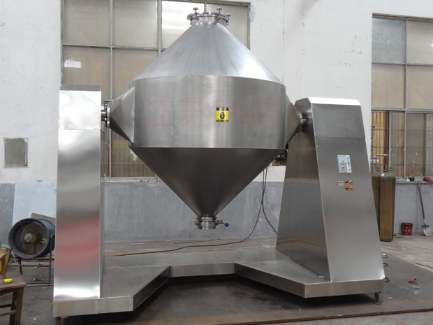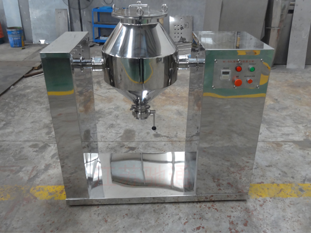 W型雙錐混合機(jī)由雙錐筒、機(jī)械密封、機(jī)架、減速傳動(dòng)、攪拌葉片等構(gòu)成。該機(jī)的工作過(guò)程是:把需混合的幾種物料通過(guò)真空輸送或人工加料投放到雙錐體內(nèi),上好筒蓋,開(kāi)起設(shè)備,雙錐筒及攪拌葉片同時(shí)轉(zhuǎn)動(dòng),旋轉(zhuǎn)的雙錐筒使筒體內(nèi)物料產(chǎn)生紊亂翻滾混合,高速旋轉(zhuǎn)的攪拌葉片打碎結(jié)團(tuán)物料,使物料在筒體內(nèi)快速混合。W型雙錐混料機(jī)工作過(guò)程無(wú)死角,無(wú)沉積,可使混合的物料快速達(dá)到均勻一致的效果。