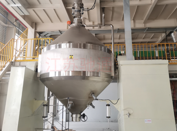 (三)雙錐筒進(jìn)料口采用快開(kāi)旋開(kāi)閥,出料口采用大口徑90°旋閥,使用特別方便。